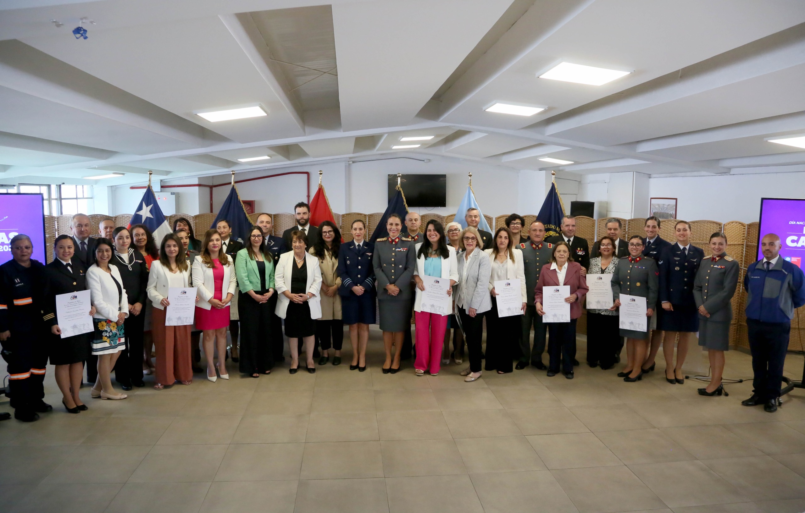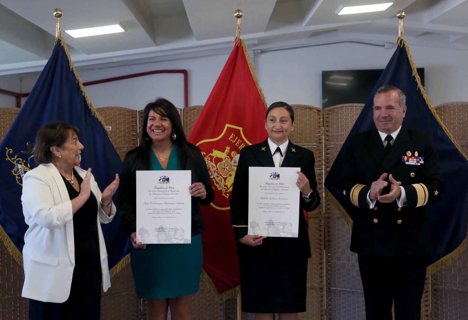 La instancia congregó a las principales autoridades de la Defensa y las Fuerzas Armadas, entre ellas, la Ministra de Defensa Nacional, Adriana Delpiano, acompañada de la Ministra de la Mujer y Equidad de Género, Antonia Orellana, junto al Subsecretario de Defensa, Ricardo Montero; el Subjefe del Estado Mayor Conjunto, Contraalmirante Juan Pablo Marín, y en representación de la Armada, el Director de los Astilleros y Maestranzas de la Armada, Contraalmirante José Miguel Hernández, además de invitados especiales y las familias de las homenajeadas.